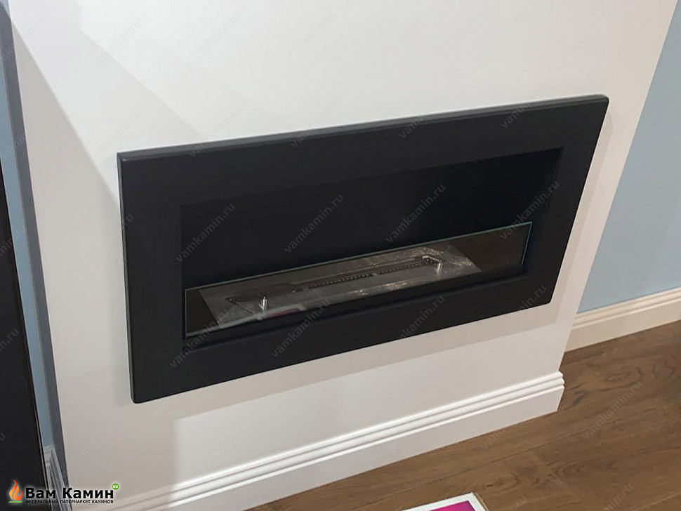 Биокамин в нишу SteelHeat GRAND 900 отличают компактные размеры, пожаробезопасность и надежность. Такой экокамин отлично подошел для небольшой белой ниши. Черный современный стиль биокамина создал четкий акцент на светлом фоне и хорошо вписался в дизайн всего помещения.